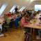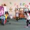Uvítáním byla naše scénka ze školního prostředí, která byla plná legrace a i děti s učiteli se nasmáli. Po scénce moderátoři Teodor a Gábina uvítali v tělocvičně všechny přítomné. My ostatní jsme zatím nachystali věci na první soutěž – židličkovanou. Mezi vylosovanými dětmi byl náš třídní učitel. Po hře následovalo tancování, kde se všichni náramně rozparádili.